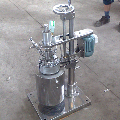 升降翻轉快開反應釜是我公司近年來研制的新產品,它綜合了國內外高壓釜的優點,不僅具有外型美觀、結構緊湊、操作方便等特點,而且大大縮短了工作時間,使笨重的體力勞動實現了機械化。釜體與釜蓋間采用快開蓋結構,短時間內便可打開;釜蓋上設有手搖旋轉結構,可繞水平線旋轉大于135 角度,便于清洗釜內殘物。